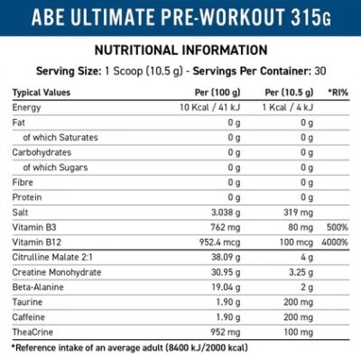 Applied Nutrition ABE Preworkout delivers a unique blend of the most vital and researched active ingredients. Resulting in increased Physical Performance*, Reduced Tiredness & Fatigue* and providing Continual Focus throughout your training. Also maximizing your bodies potential. However talk is cheap and the proof is in the product. After extensive research, Meticulous Formulating and Precise Lab Testing we are confident to let ABE do the talking.