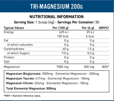 Applied Nutrition Tri-magnesium Powder is a high-quality supplement designed to provide a comprehensive and highly bioavailable magnesium blend. Featuring three forms of magnesium: Magnesium Bisglycinate, Magnesium Citrate, and Magnesium Taurate, this powder ensures optimal absorption and effectiveness. Ideal for individuals seeking to support muscle function, improve sleep quality, and maintain overall health.