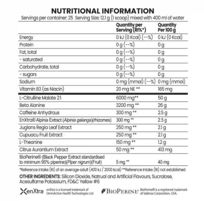 Designed to amp you up. Expect to crush PB’s and even get an edge on fat burning if you are on a diet plan.