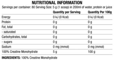 - 5g of creatine monohydrate per serving