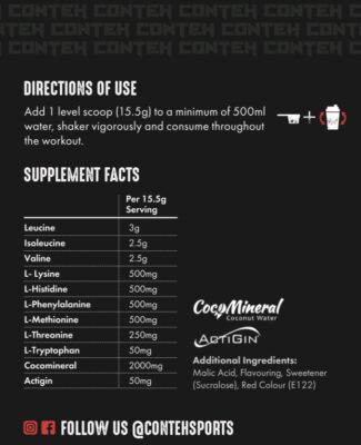 Conteh Sports Essential Gains EAA – anabolic essential amino acid formula! Designed to help with recovery, muscle growth and hydration! Essential Gains contains all nine essential amino acids at a clinical dose, as well as patented CocoMineral® for added hydration. We also added the patented ingredient ActiGin® to help promote muscle recovery, energy and the regeneration of new muscle cells!