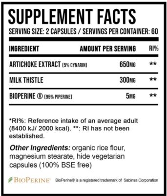 Artichoke extract contains Cynarin which is supplemented to support liver function, digestion and cholesterol levels. Milk Thistle contains bioactive Silymarin, a group of mixed plant compounds which may improve liver health. Bioperine has been included to improve the bioavailability and maximise the potential effects.