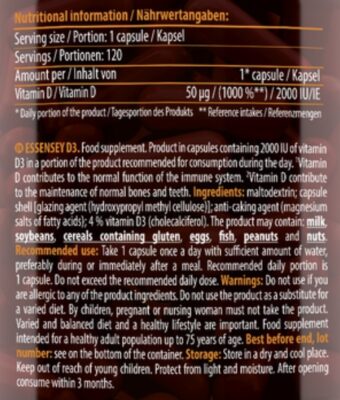 - Each capsule provides 2000 IU of vitamin D3.