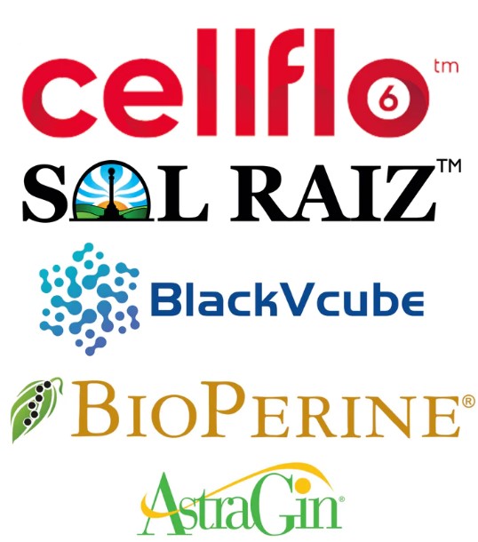 Sol Raiz™ Lepidium Peruvianum Chacon, CellFlo6™ green tea extract, Pomegranate extract and Blackvcube® Black Ginger extract were chosen because they each yield a multitude of clinically substantiated benefits which become even more pronounced when used in combination.