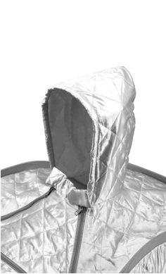 Fill the included steam generator with 2 liters of water, close the lid, plug it into a socket and turn it on by pressing the power button on the bottom. Enter the sauna and zip up all the zippers. Pay particular attention to the spot where the steam enters the sauna as hot steam may cause skin burns! Press the red button on the remote control to turn the sauna on. Use the green buttons to set the duration of your sauna and the gray arrows to adjust the intensity (from 1 to 9). Since the steam generator displays your settings (there’s a small digital display), make sure to place it where you can see it. Depending on the intensity, the steam generator (with its 2-liter capacity) can generate steam for up to 60 minutes. The sauna heats up to a comfortable temperature of 45°C. When you’re done, ventilate the sauna and pour the remaining water out of the water reservoir before folding it up and storing it away.