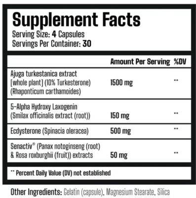 This powerhouse supplement combines a synergistic mix of Turkesterone, Laxogenin, Ecdysterone, and the patented ingredient Senactiv®️ to provide comprehensive support for your fitness goals.