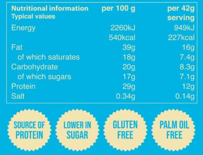 | Flavour | Double Chocolate Hazelnut Butter, White Chocolate Peanut Butter, Milk Chocolate Peanut Butter |