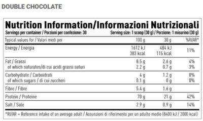 Plant Protein Matrix (Pea Protein Isolate, Rice Protein Isolate), Cocoa Powder, Flavour, Salt, Thickener (Guar Gum, Xanthan Gum), Sweetener (Sucralose).