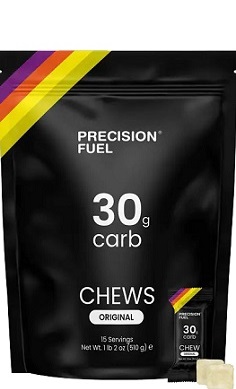Precision Fuel PF 30 Chew – Our energy chews have a high carb to weight ratio, making them a great choice when you need to travel light. Each packet contains 2 chews efficiently delivering 15g of carb each. The “Original” flavour chews have a mild, neutral taste.
