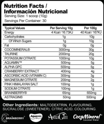 - COCOMINERAL® (3000mg): Derived from coconut water, this electrolyte-rich component supports optimal hydration and mineral balance, essential for cognitive function.CocoMineral® is an instantised coconut water powdered extract containing the minerals sodium and potassium, which are lost through sweat during exercise