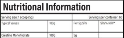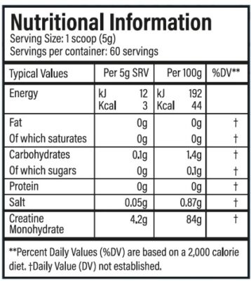 5g Creatine Monohydrate Per Serving: